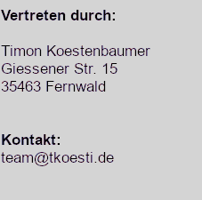 Der Nutzung von im Rahmen der Impressumspflicht veröffentlichten Kontaktdaten durch Dritte zur Übersendung von nicht ausdrücklich angeforderter Werbung und Informationsmaterialien wird hiermit ausdrücklich widersprochen. Die Betreiber der Seiten behalten sich ausdrücklich rechtliche Schritte im Falle der unverlangten Zusendung von Werbeinformationen, etwa durch Spam-Mails, vor.